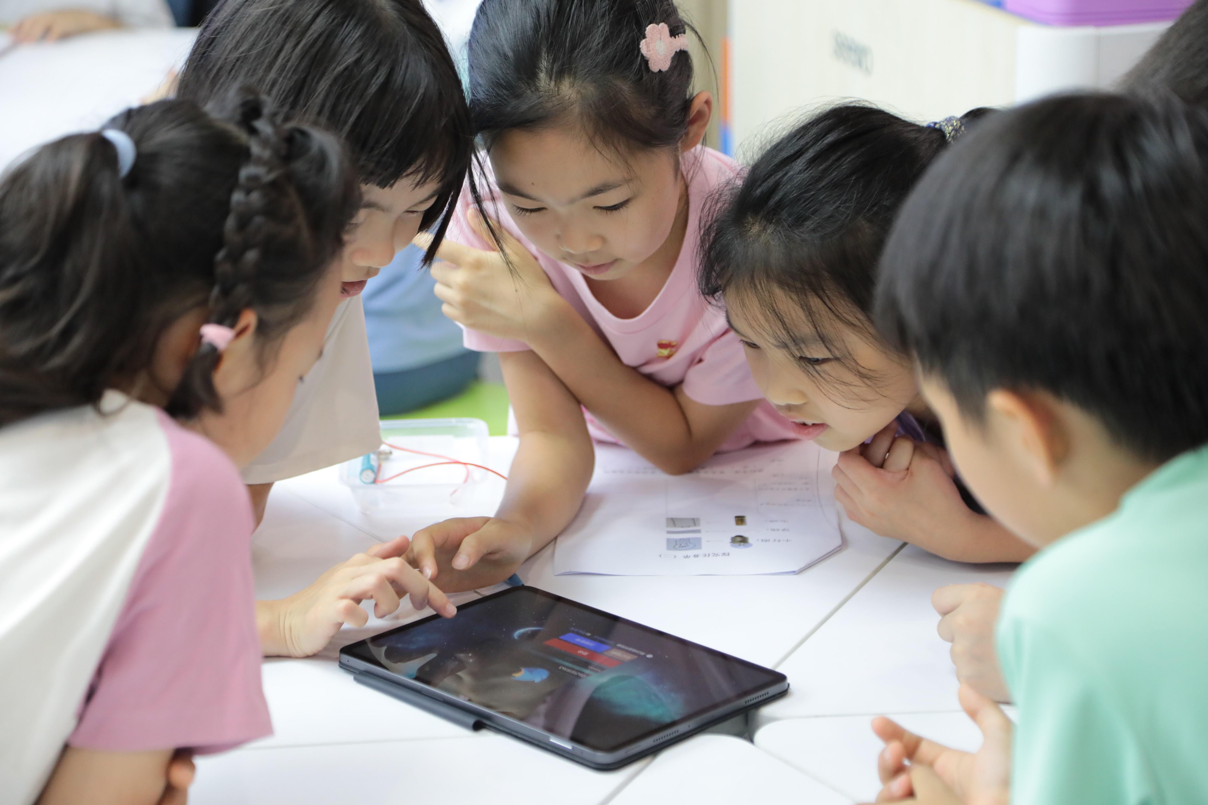 学校常说“从一米的高度看世界”,“儿童”的视角被真正看见。走廊里,互动学习墙等待探索,个头不高的孩子们站上去刚刚好;地面上,游戏图案引导欢笑与合作,让课间15分钟更加有序快乐;老师们的课程研发中心,现代教学设备悄然入驻,三联屏让学习过程更丰富显见,AI评课系统支持着每一份课堂的灵感。这里不仅是校园,更是一个可触摸、可对话、可沉浸的成长生态。